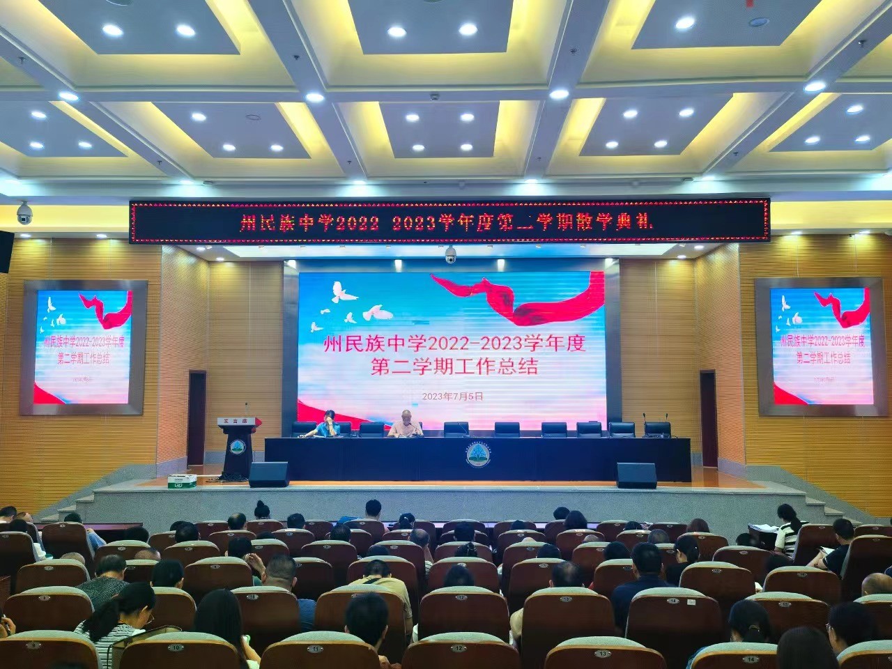 7月5日,我校在知正楼多功能报告厅举行2022—2023年度第二学期散学典礼,全体教职工参加会议。会议由党委委员、副校长向前东主持。