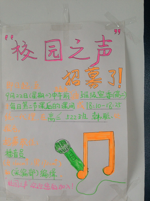 9月23日晚6:30,学校团委在大阶梯教室举行了“校园之声”广播站播音员及采编员选拔赛,来自高一年级的156名选手参加了本次选拔。经过激烈的角逐,腾茁、林长江、邓孟潇等37名同学脱颖而出成为校广播站的新成员。