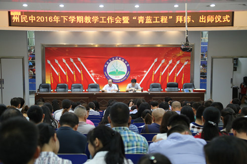 9月伊始,我校在大阶梯教室召开了2016年新学期教学工作会暨“青蓝工程“总结大会。校党委书记郑英滨,副校长张泽贤、向前东及我校全体教学、教辅人员参加了会议,会议由校长王斌主持。
